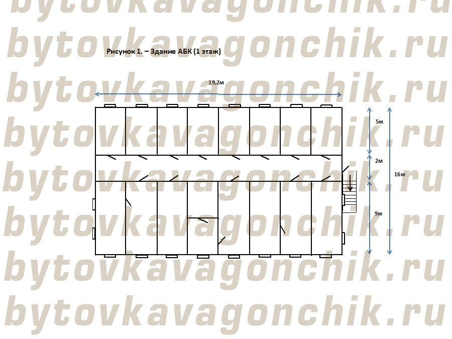 1. Блок -контейнер  БК 5,0*2,4*2,5 -8шт.      (1 этаж)