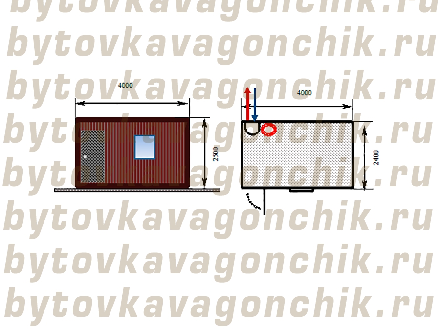 ГлавнаяПроектыВагончики бытовки → Бытовка для рабочих 4м